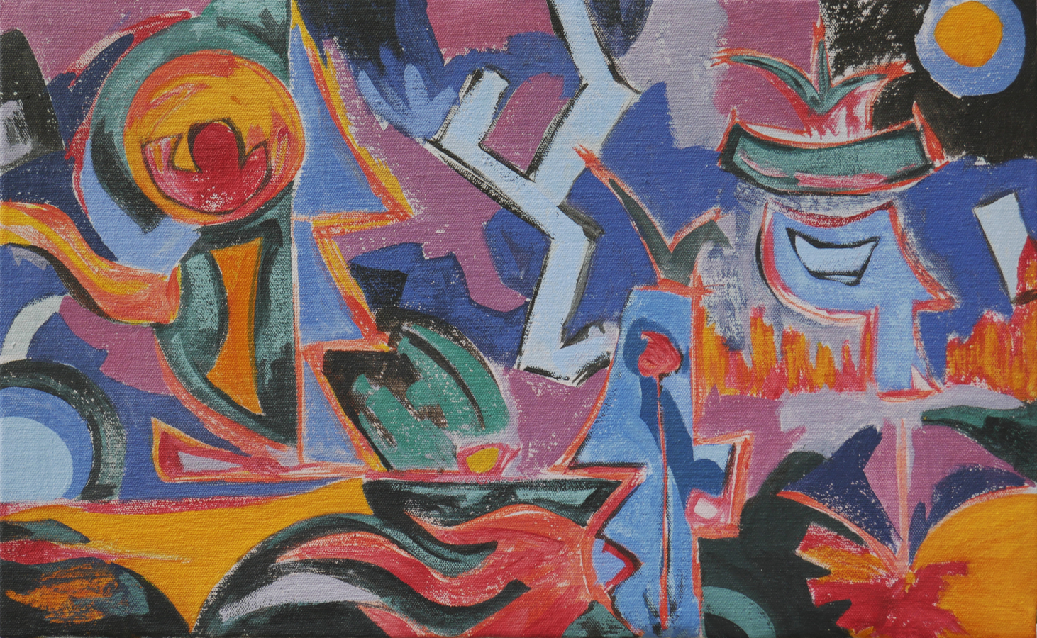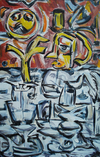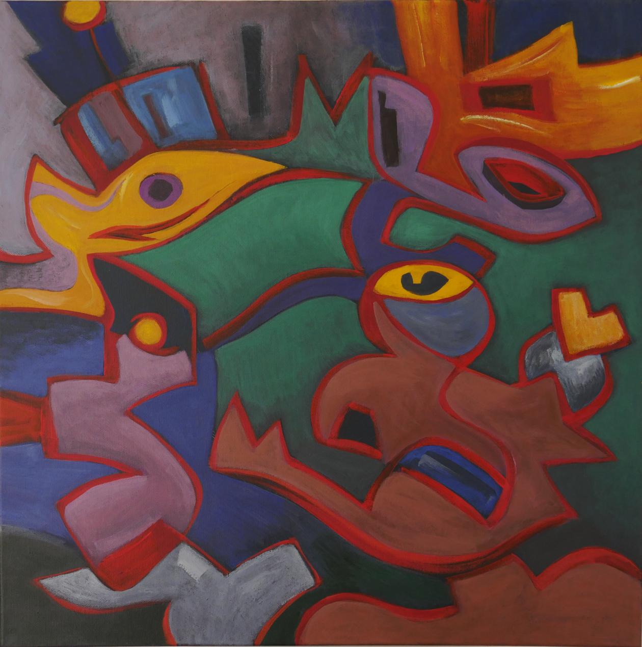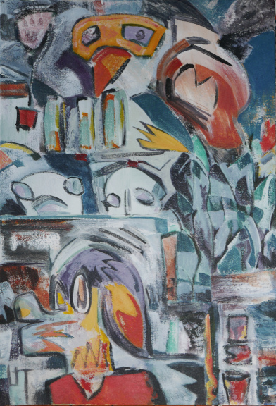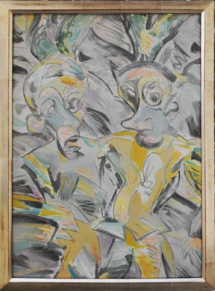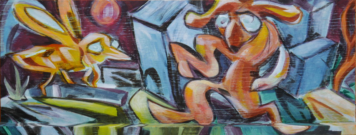 chance meeting .. 23 x 17" acrylic, spraypaint,color pencil .. $800