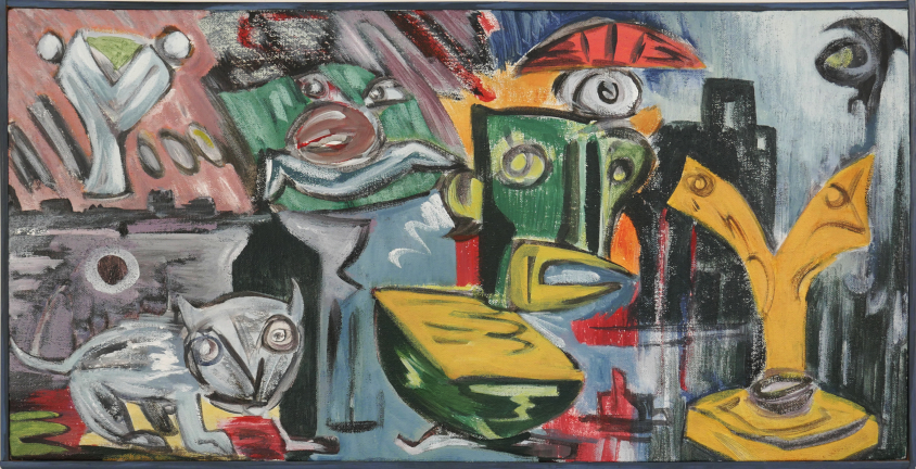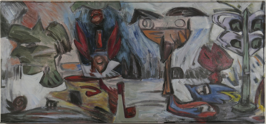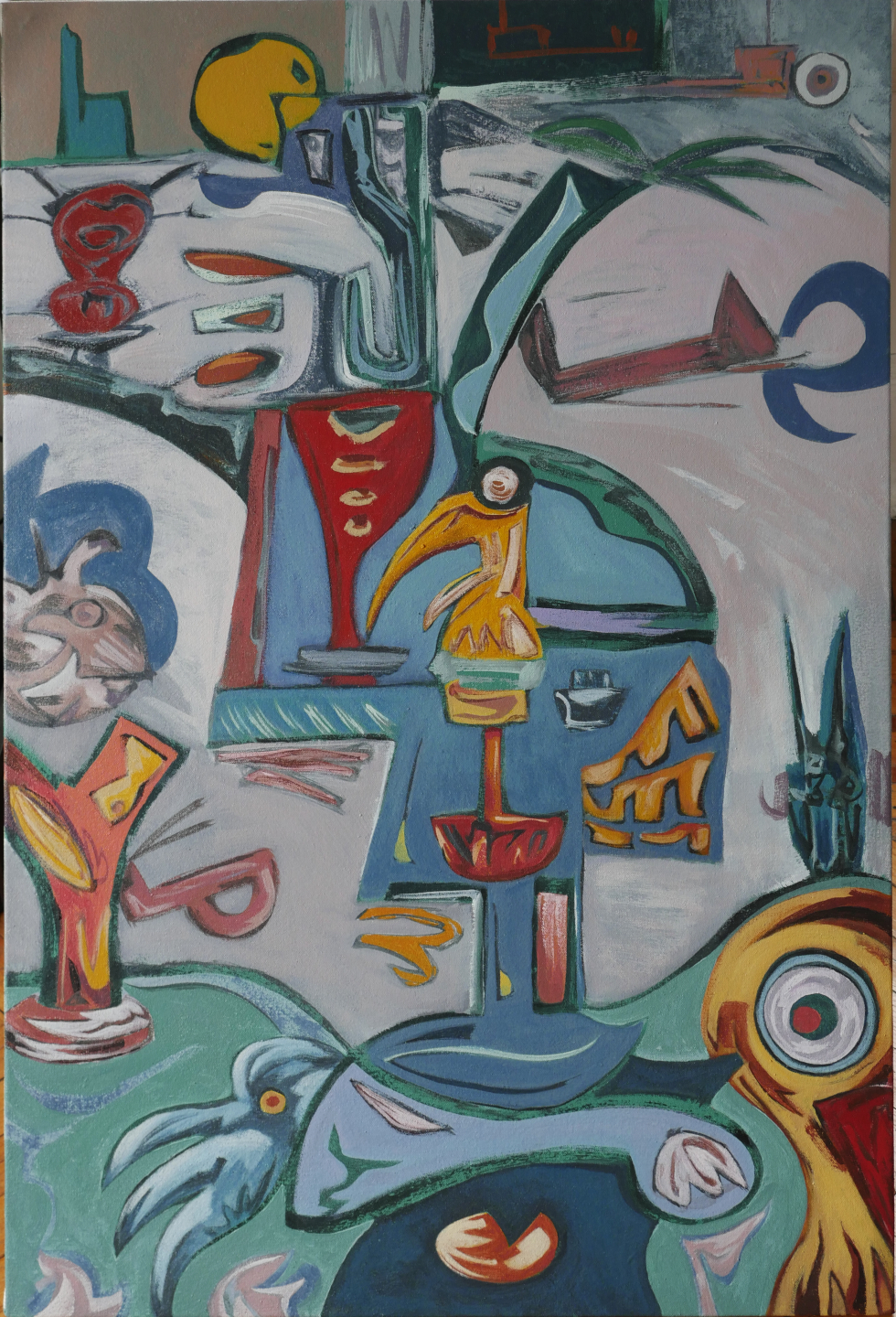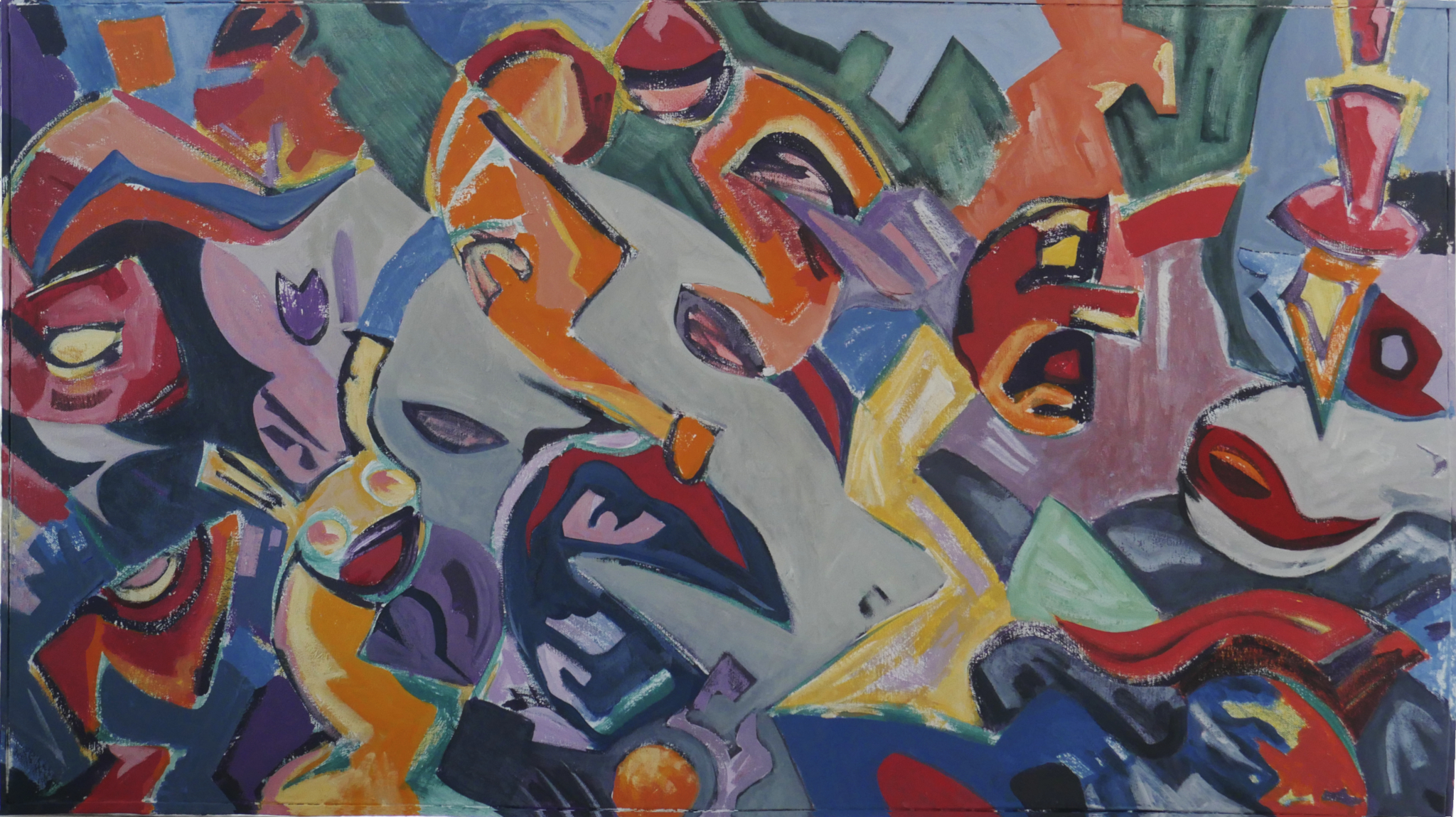 chance meeting .. 23 x 17" acrylic, spraypaint,color pencil .. $800