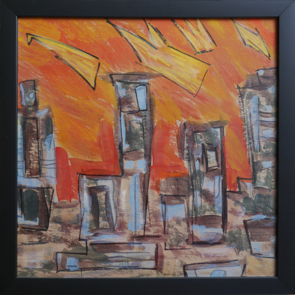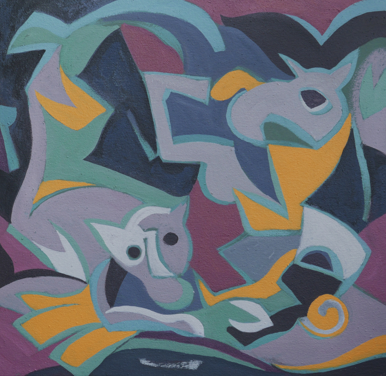 roaming charges .. acrylic on mat board & woodframe .. 18.5 x 16".. $700