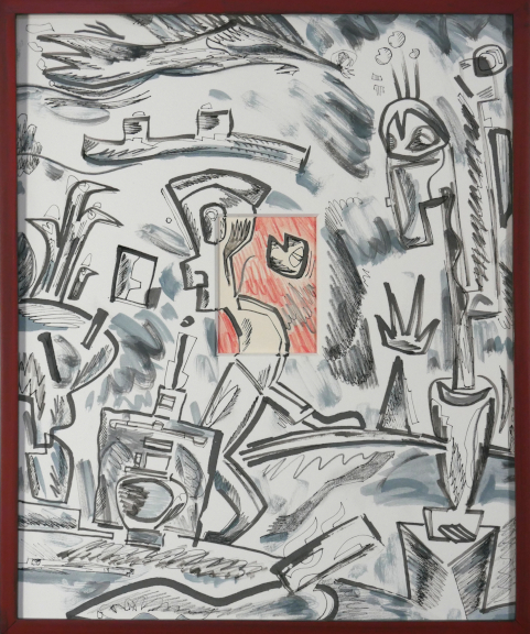 red window . . 18 x 15" . . acrylic, ink & colored pencil on mat board . . $500