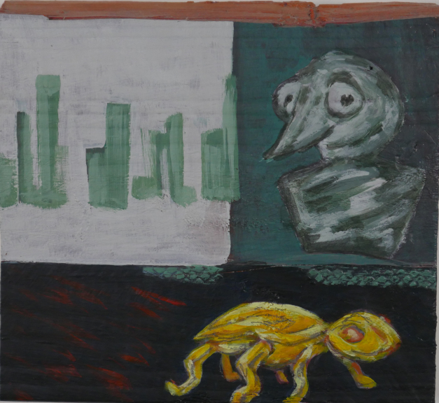 pathogenic .. acrylic on mat board & wood frame .. 18.5 x 16".. $700