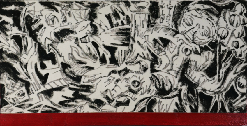 voyager without remorse . . 14 x 27.5" . . ink, marker, canvas, wood . . $500
