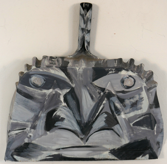 jungle face (acrylic and sharpie on metal dustpan) . . 18 x 32". . $700