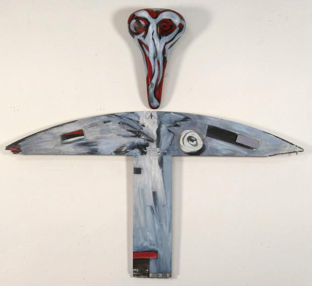 spectre .. acrylic on bicycle seat, wood .. 42 x 38" .. $500