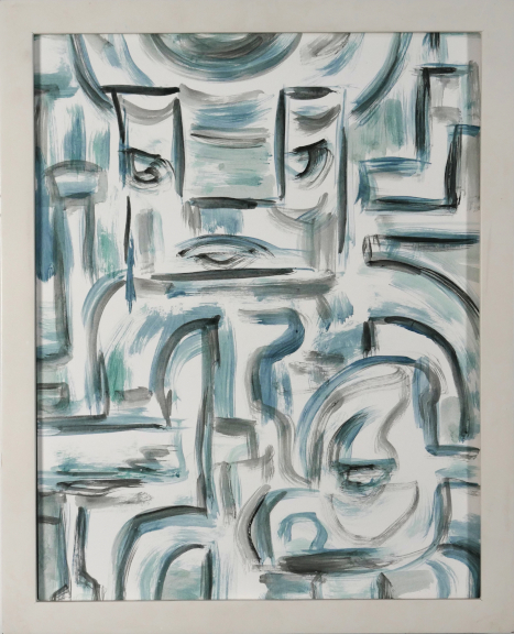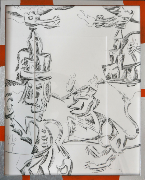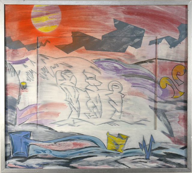 winds of sagres.. acrylic, spraypaint, marker on matboard, framed .. 22 x 24" .. $600