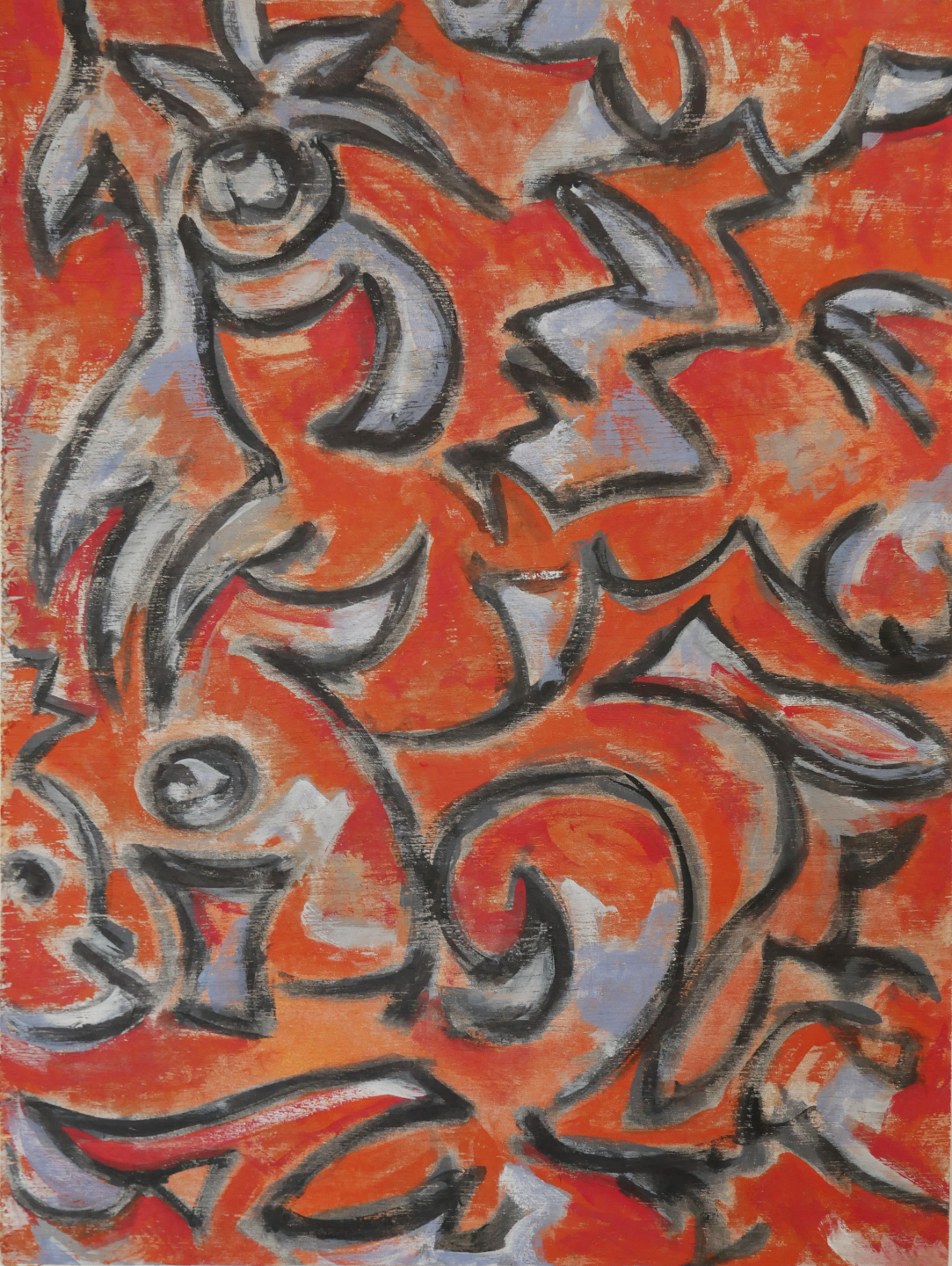 pathogenic .. acrylic on mat board & wood frame .. 18.5 x 16".. $700